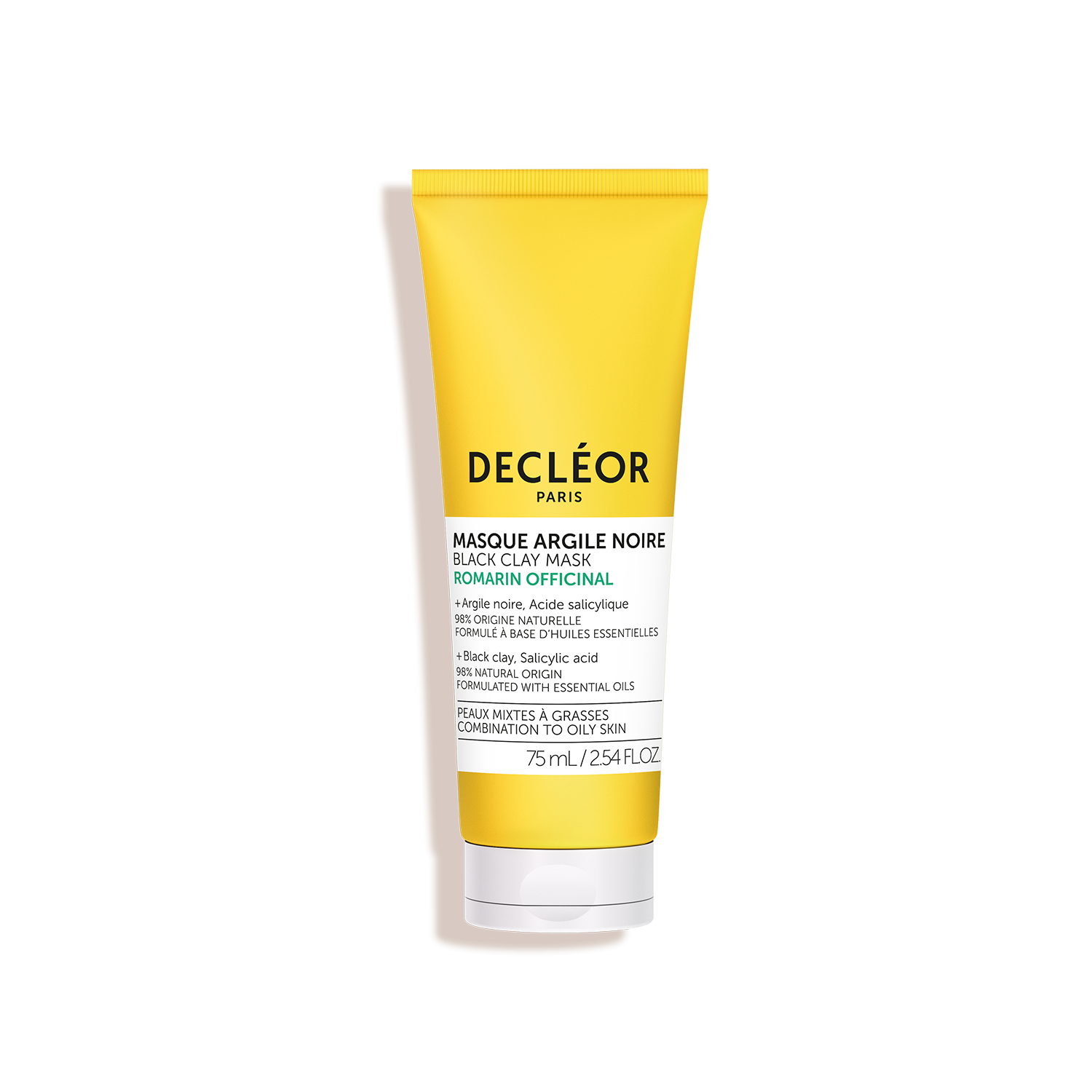 This purifying black clay mask blends the power of Rosemary Officinalis Essential Oil with salicylic acid to deliver targeted action on shine and enlarged pores. In just 10 minutes, it absorbs excess sebum, lifts away impurities, and visibly refines skin texture without drying. The result: clearer, mattified skin and a visibly clarified complexion.
