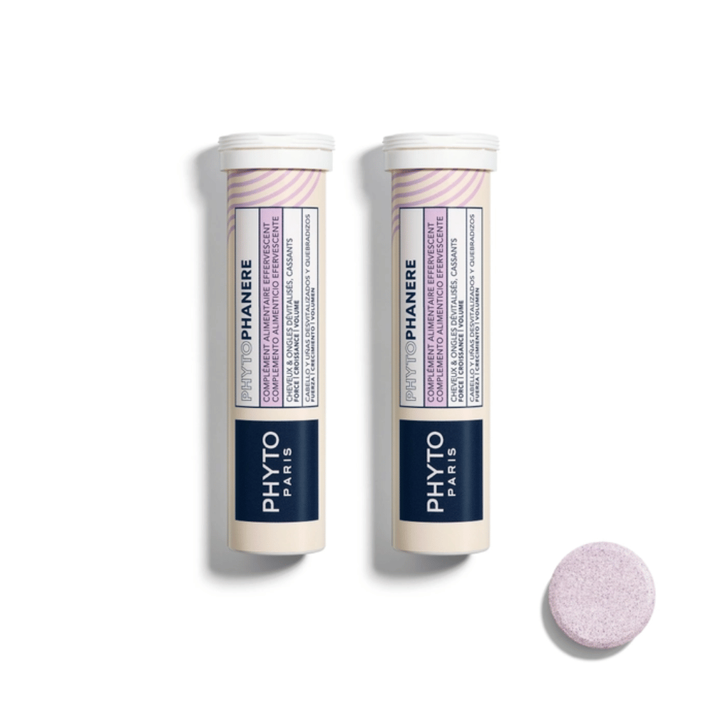 PHYTOPHANERE Effervescent, the first* effervescent multivitamin and mineral food supplement that delivers STRENGTH(1), GROWTH(2), and VOLUME to lifeless, brittle hair and nails. Its formula provides 100% of the reference intake for vitamins C, E, B1, B3, B5, B6, B8, and B9.