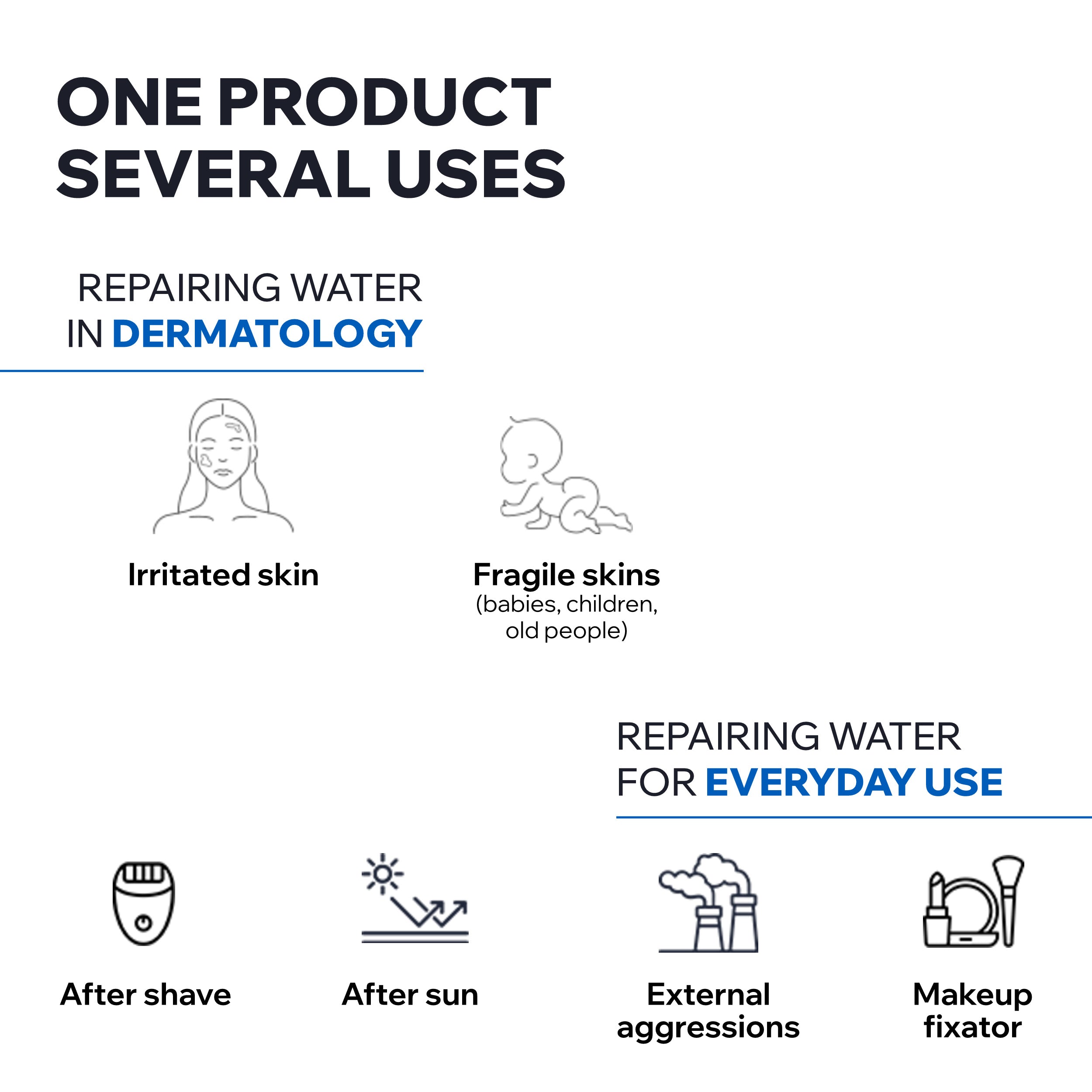 Uriage Repairing Thermal Water travels deep under the French Alps for 75 years to its source. Its unique concentration of minerals and trace elements offers scientifically proven hydrating, soothing and protective properties. This isotonic water works in perfet harmony with the cells and helps improve the skin’s quality. This daily dermatological care product reinforces skin’s triple barrier. Can be used by the whole family and for multiple purpose. Practical and easy to carry, this water is your everyday ally for fresh, soothed, and hydrated skin at any time of the day. Recommended by dermatologists. *Average value