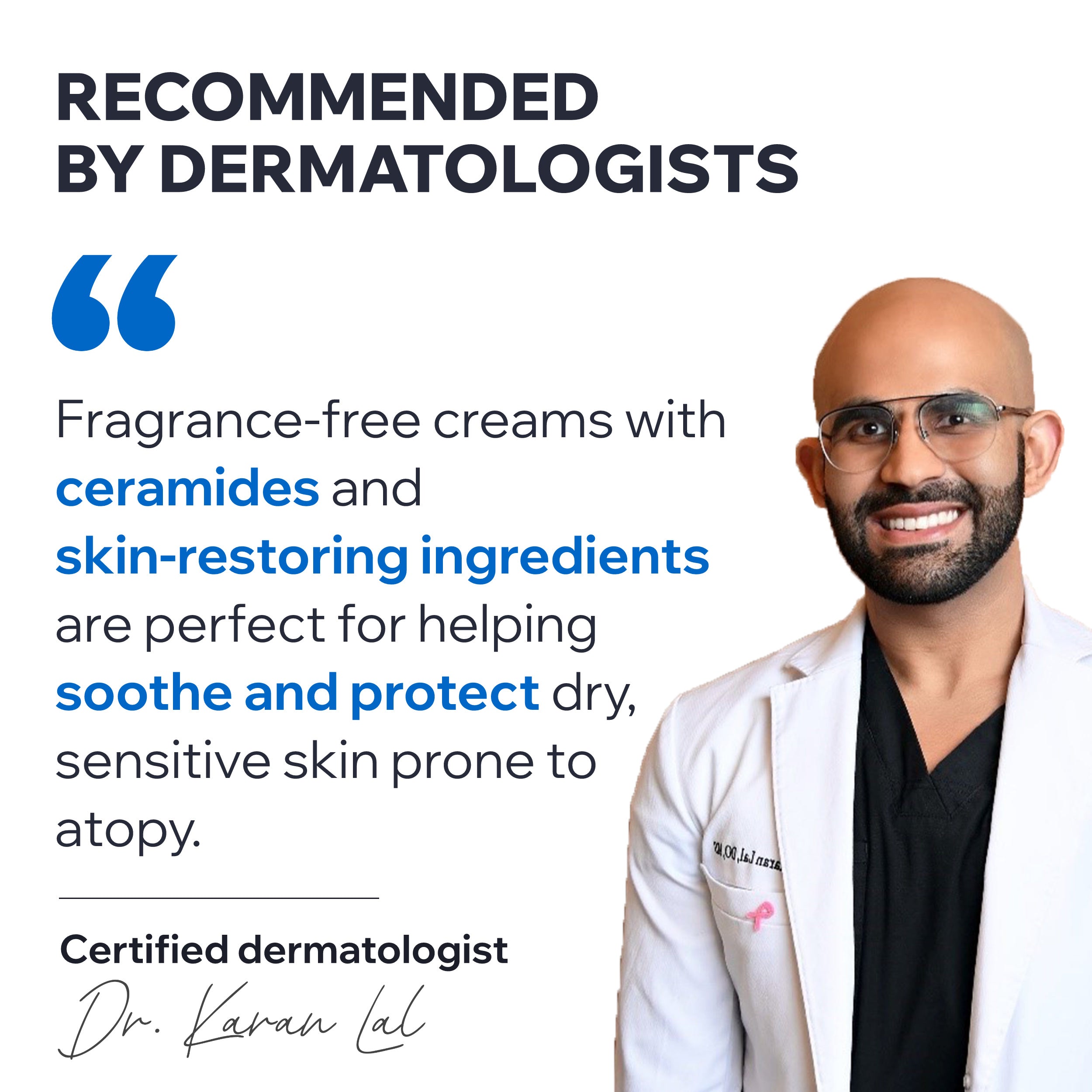 This nourishing, protective cream instantly soothes itching sensations that cause scratching due to dryness and brings long-lasting comfort. The melting, non-sticky texture allows getting dressed immediately after application. It instantly penetrates and reduces peaks of severe dryness, bringing long-lasting comfort.